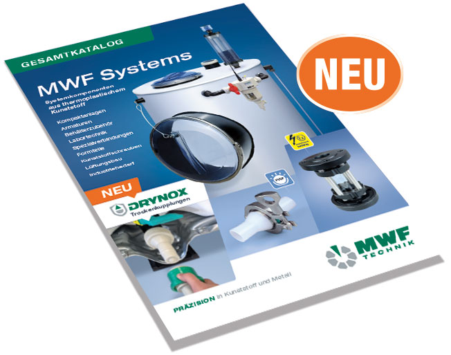 Im aktuellen Gesamtkatalog MWF Systems finden Sie neben dem Probeentnahmeschrank im Bereich Labortechnik unser gesamtes Angebot in den Produktgruppen Kompaktanlagen, Armaturen, Behälterzubehör, Spezialverbindungen, Formteile, Kunststoffschrauben, Lüftungsbau und Industriebedarf.