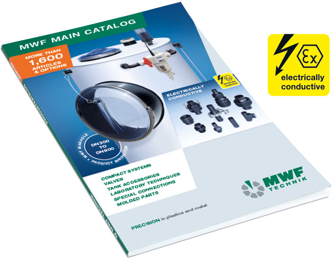 In the current MWF product catalog, you will find, in addition to the sample extraction cabinet in the laboratory technology section, our complete range in the MWF product groups compact systems, valves, tank accessories, special connections, molded parts, and electrically conductive (PE-el).